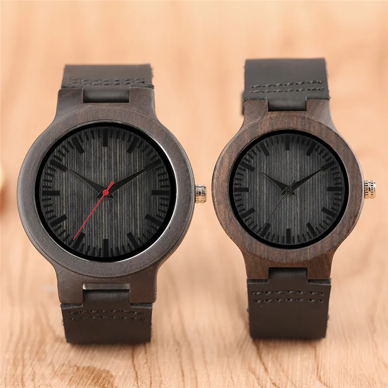 Couple Watches for Lovers luxury Handmade Ebony Wooden Quartz Watch Nature Bamboo Male Female Clock